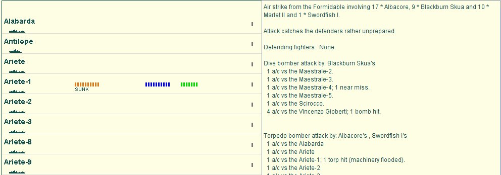 Shown below is an extract of a battle involving aircraft from the carrier Formidable, on an Italian fleet. The text shows several bomb and torpedo hits as well as aircraft losses: