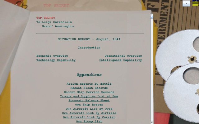 The situation report gives you static information - a text summary - compiled by the Head of your Naval Intelligence Department.