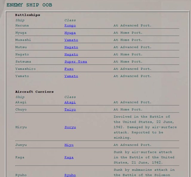 There are also hyperlinks to appendices detailing your own and the enemy's current ships.