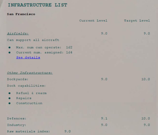 The value of any convoy shipments last turn is shown, as well as the total value of infrastructure investments.