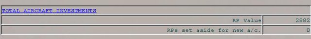 Also shown are the number of RPs that are currently set aside for aircraft production in the current turn. These RPs have been set aside automatically. In the build aircraft phase of a turn, you use these RPs to actually order aircraft, which then become available for use in the same turn. Refer to how to build aircraft for more information.