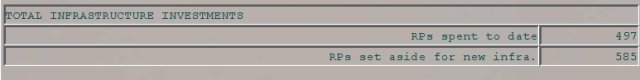 The RPs you have spent on infrastructure during a game are also considered assets. The next section of the Balance Sheet is titled 'Infrastructure Investments' and shows both the number of RPs you have spent in the game to date, and the number you intend to spend.