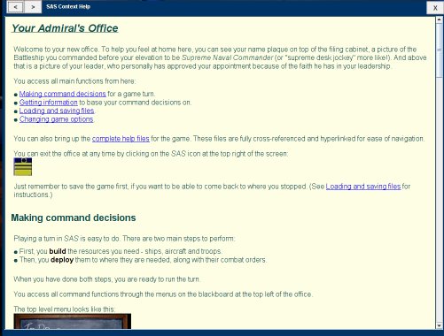 Illustrated below is an example of the context help screen for your Admiral's office: