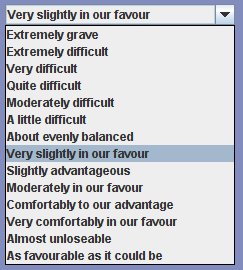 If so, you can change the assessment of odds for the side you are currently playing by selecting a different odds value from the selector:
