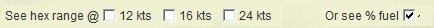 Sometimes, it pays to check the other speeds. Here, the hex range is shown for a speed of 24 knots. It shows a much reduced range for the destroyer, and zero range for the carrier. This is a quick way to detect if ships are suited to the kind of operations you are planning:
