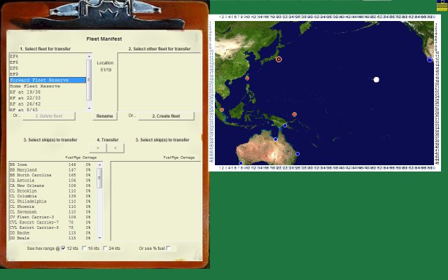 The following screen shots show some ships being moved from the Home Fleet Reserve into fleet "TF4":