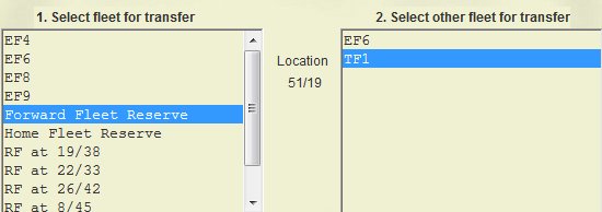 The new fleet is shown in the right hand list. When a fleet is selected in both the top left and right hand lists, you can immediately start transferring ships. See assigning ships to fleets for more information.