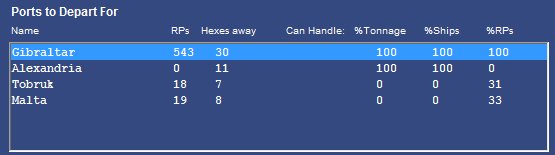 Simply click in the 'Ports to Depart For' list to select any port if you do not like the selection made by the AI (which is always the top most port in the list).