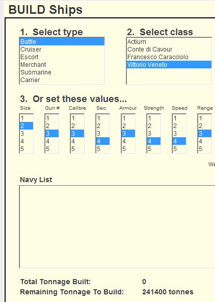 If he were now to build some ships, he would see that the build ships screen showed (at the bottom) that he could build up to 241,400 tonnes of ships: