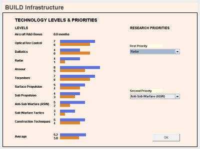 To do this, click on the "Priorities" button. You will see the Technology Levels and Priorities Screen: