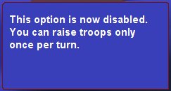 As explained below, this one screen has some simple controls that let you control how many (and what type of) troops you will raise this turn.