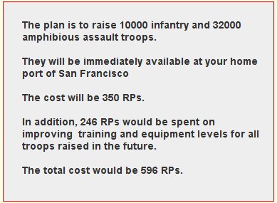 The Plan sets a target number of infantry and amhibious assault troops to raise. The numbers depend on the total RPs that are allocated and also the balance of types you want - the ratio of normal infantry to amphibious troops.