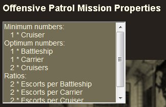 Your 2IC decides which ships will be in the mission (and from where they will come). But you can indirectly influence the composition of fleets by setting rules for the minimum and optimum numbers of types of ships for the mission. This section explains how to do this. (You may also directly control the actual allocation of ships but for this you will need to know how to edit or create your own missions - see how to edit or create missions for more information).