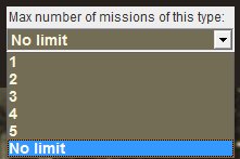 Note that if you so limit the maximum number of any particular mission type, what will often happen is that your 2IC will create fewer missions of that type, but each will have more ships than would otherwise have been the case.