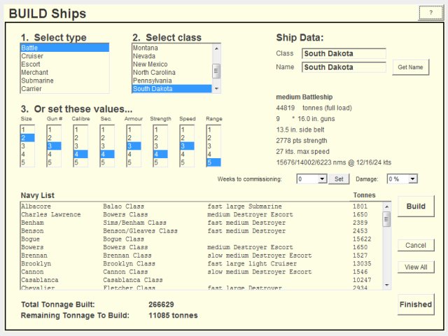 The simplest way to build a navy from scratch is to rely (again) on your 2IC. He can select the right types of ships and balance the numbers of battleships, cruisers, escort ships and so on, to suit your overall strategy.