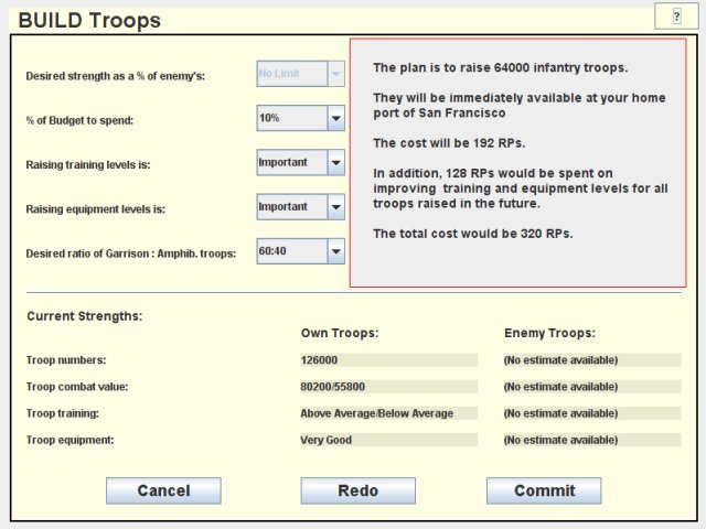 Again, your 2IC has prepared a plan based on your strategy and various specific attributes. Normally you may want to modify the plan, but for this quick run-through just agree to the plan by clicking the 'Commit'