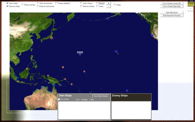 SAS WW2 gives you complete flexibility to choose the degree of control you want over this most important task. At the most extreme end, you can manually assign ships to fleets and set the route, rules of engagement and other orders for each fleet. At the most simple end, you can get your 2IC to plan everything for you with one mouse click. And there are many intermediate control options as well.