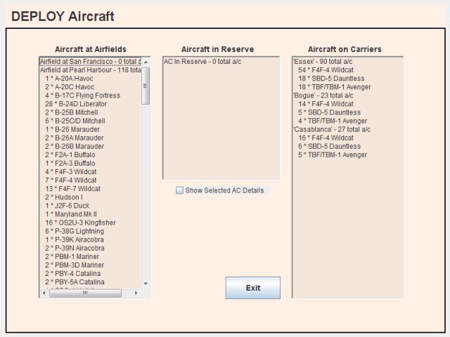 Your 2IC has already planned the deployment of all available aircraft based on the type and number of aircraft you have, and the type and number that can be operated from each of your airfields and carriers.