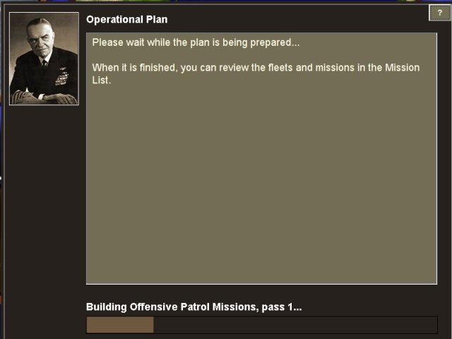 Usually the phase that takes the longest is when the computer is forming enemy missions. This may take a little while, so please just wait until it is all finished. The screen will then close automatically, and you will briefly see this screen, telling you that data for the run turn calculation is being prepared: