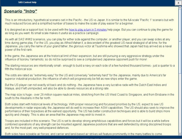 (Note: the 'Intro' scenario is purely for demonstrating the most basic mechanics of game play. It makes no attempt at play-balance or historical accuracy. Players should move on to one of the more realistic scenarios as soon as possible.)