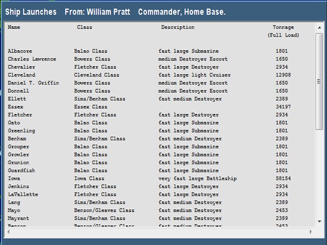 After a few seconds, you will see a scrollable list of the ships listed by type: