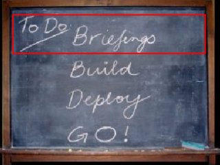 To access the Briefing Report, click on 'Briefings' on the blackboard to the left of your Admiral's Office: