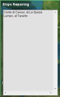 The boxes are colour coded: red boxes are for critical events such as battle reports (aerial; surface; submarine; bombardment and amphibious assaults) as well as ship sinkings and mine damage. Black is for enemy signal intercepts, while pale red is for enemy sightings and emergency fleet orders. Other colours are for less critical events: brown boxes show air strikes as they move; yellow boxes show cargo handling, and green boxes are used for everyday events such as ship refuelling and repairing.