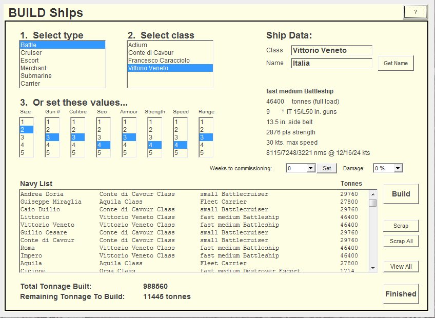 You use this screen whenever you want to edit your 2IC's plan, or first build the key ships before using the 2IC, or when you are not using your 2IC at all and intend to manually give ship building orders for all of your navy. The process is the same in each case.