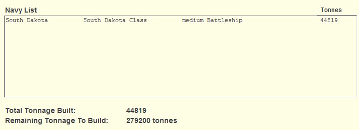 At the bottom of the "Navy List" you can see a progressive total of the tonnage you have built so far, and the remaining tonnage that you have left to build.