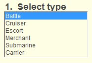 Then to select a historical class of ship to your navy, just two mouse clicks are required: