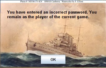 The password also signals that the game is to be played in a controlled way during turn calculation. As soon as either player adds a password, the computer will detect this during turn calculation and will prevent either player from making any changes during calculation that could affect the result and leave each player with an 'out-of-synch' game after calculation.